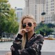 Gigi had the same look with her cartoonish red dress and a black scribbled jacket.
